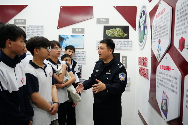 活动期间,禁毒大队组织初二男生分批次参观华侨中学禁毒宣教室。民警通过图文展板、仿真毒品模型展示、典型案例剖析等方式,向学生们详细讲解了毒品种类、危害及防范技巧,重点针对新型毒品伪装性强、迷惑性大的特点进行深入解读。为巩固宣传效果,现场还设置了禁毒知识有奖问答环节,学生们踊跃抢答,在互动中进一步加深了对禁毒知识的理解和掌握,现场气氛热烈。