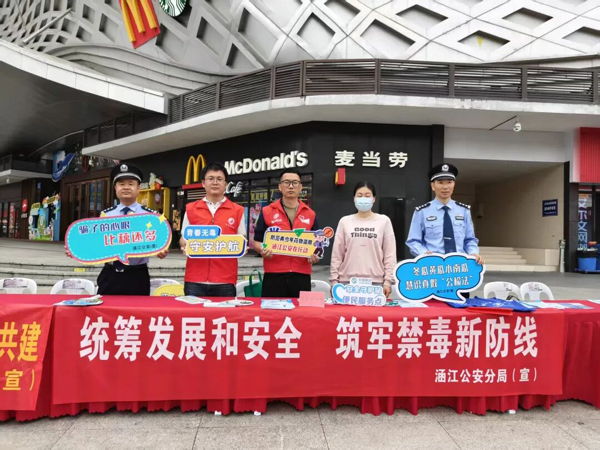 在水韵城天虹广场,民警设立宣防站点摆放展板、悬挂横幅,用通俗易懂的语言,向过往群众讲解如何识别间谍行为、如何举报危害国家安全线索,面对面解答群众疑问;并结合反恐、禁毒、反诈宣传,提高群众防范安全风险的能力。