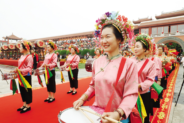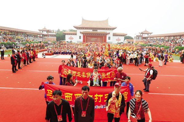 “擂鼓迎宾,恭迎天下妈祖回娘家。”上午9时30分,随着一声铜锣声落下,来自新加坡、越南、马来西亚等“21世纪海上丝绸之路”共建国家和地区以及国内部分省市妈祖文化机构、妈祖宫庙的代表与妈祖敬仰者依次入场,参加丙午年“天下妈祖回娘家”活动。