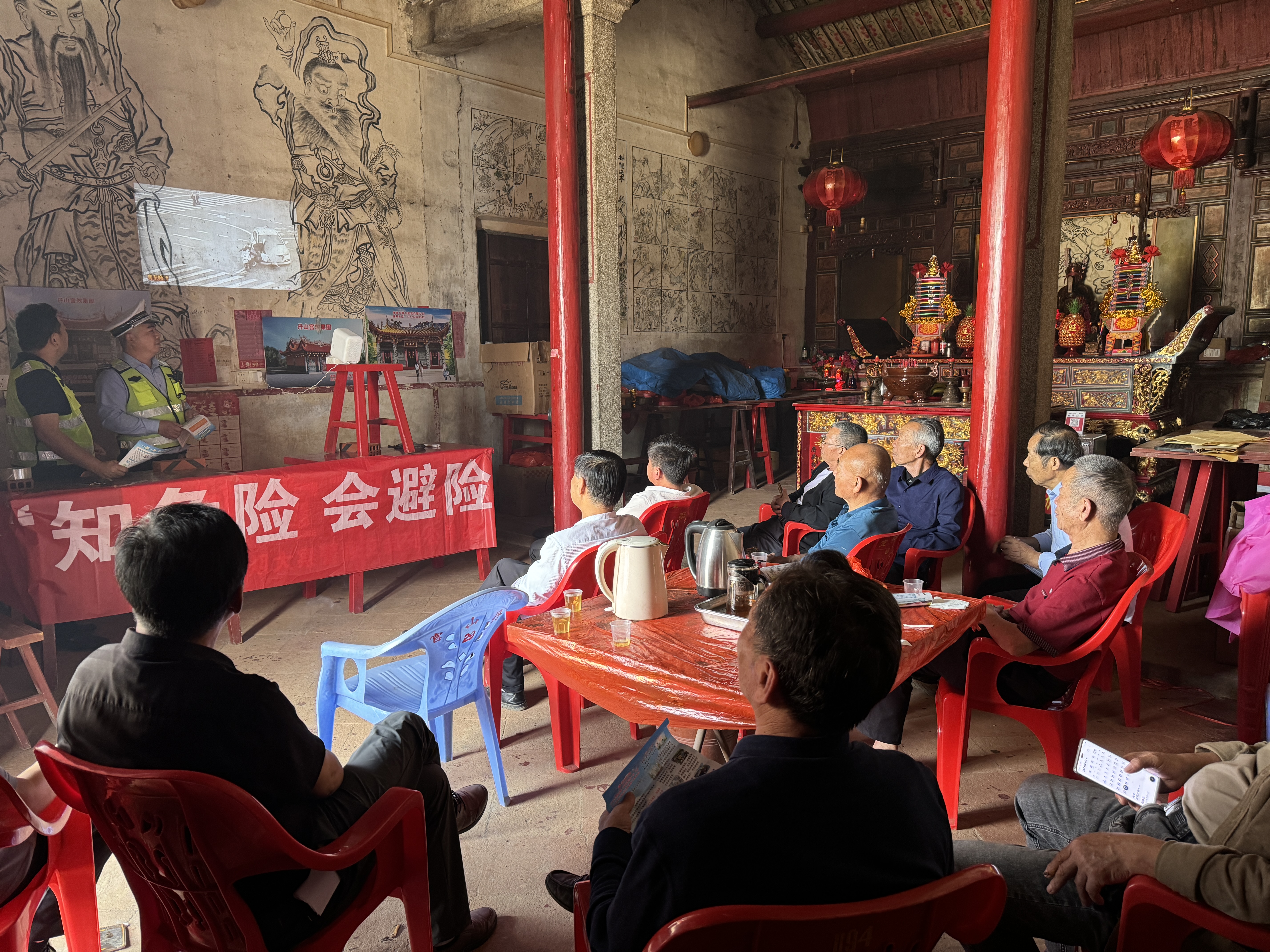 考虑到老年群体接受知识的特点,宣传民警特意借助投影仪,播放精心制作的交通安全警示视频与图文课件,直观展示辖区内近期发生的涉老交通事故典型案例,通过真实的事故场景、触目惊心的事故后果,让老人们清晰认识到闯红灯、横穿马路、逆行、骑行电动车不佩戴安全头盔、搭乘非标车辆等交通违法行为的严重危害。