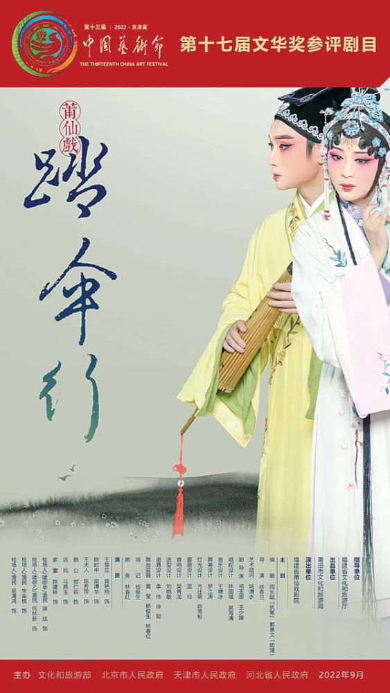 福建十五年唯一 展现南戏活化石魅力莆仙戏《踏伞行》荣获第十七届“文华大奖”莆田市政协委员吴清华、黄艳艳担纲主演 编者按:9月15日晚,第十三届中国艺术节暨第十七届“文华奖”获奖剧目正式揭晓,由莆田市政协委员吴清华、黄艳艳主演的莆仙戏《踏伞行》荣膺第十七届“文华…