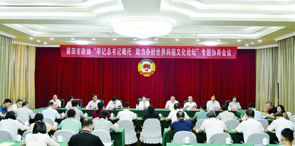在习近平总书记来闽考察一周年之际,第十届世界妈祖文化论坛举办在即,10月14日,莆田市政协召开“牢记总书记嘱托,助力办好世界妈祖文化论坛”专题协商会。市政协主席沈萌芽主持会议,副市长郭国成、市直相关部门负责人与政协委员齐聚一堂,共商办好世界妈祖文化论坛之策。此…