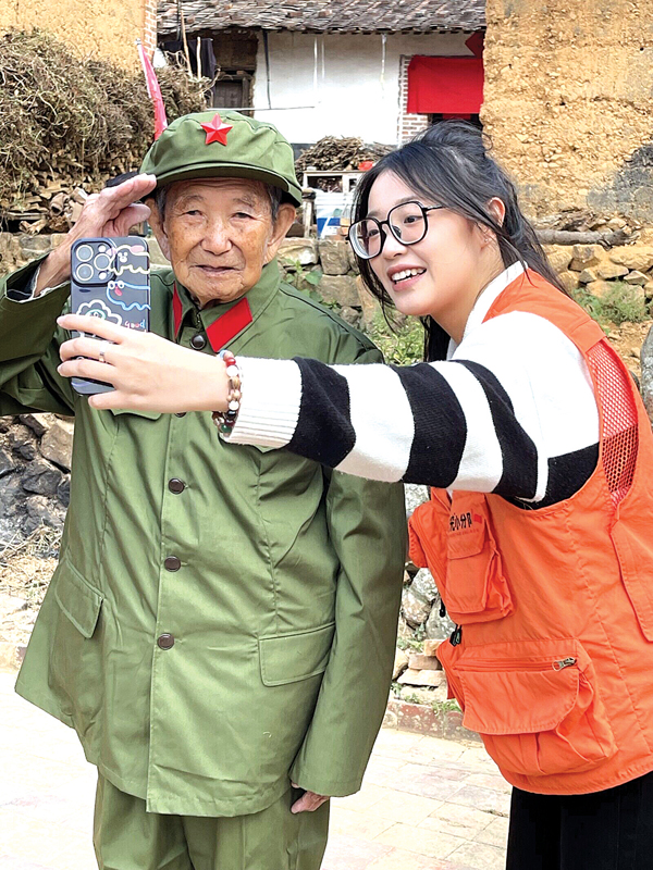 本报讯 仙游县度尾镇圣山村是省定革命老区基点村。在村里一栋斑驳的土砖房外,当莆田学院“时光小分队”到来时,95岁高龄的老游击队员凌洪坤正穿戴整齐准备参加亲友喜宴。尽管腿脚不便、听力衰退,但在政府的补贴和亲戚朋友的帮扶下,独居的他依然能照顾好自己的生活。采访在屋…