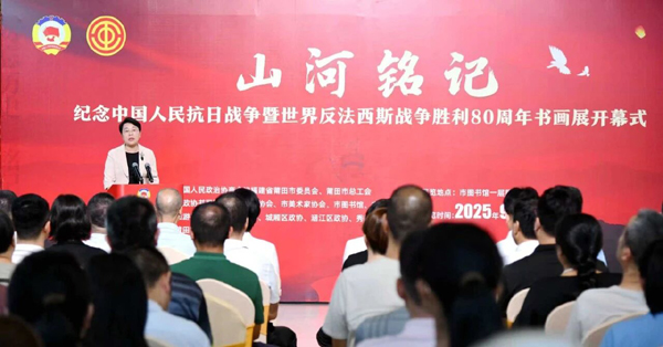 山河见证 莆田铭记市政协、市总工会纪念中国人民抗日战争暨世界反法西斯战争胜利80周年书画展开幕沈萌芽致辞 9月2日,山河铭记——纪念中国人民抗日战争暨世界反法西斯战争胜利80周年书画展开幕式在市图书馆举行。市政协党组书记、主席沈萌芽宣布书画展开幕,市政协副主席林惠…