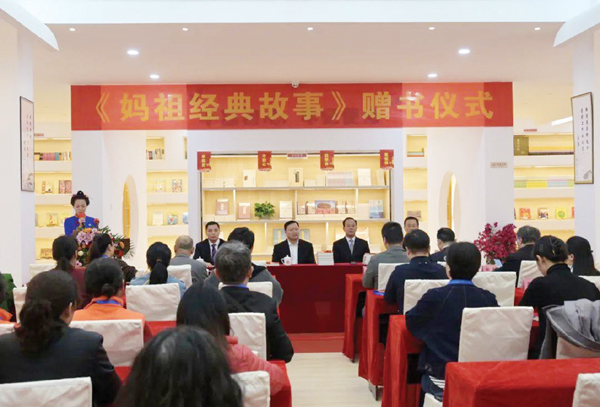 翁志鹏/摄 11月19日下午,《妈祖经典故事》赠书仪式在湄洲妈祖祖庙妈祖书屋举行,湄洲岛党工委书记吴海端,湄洲妈祖祖庙董事会董事长林金赞,湄洲岛管委会副主任陈志军等出席。林金赞在致辞中说,《妈祖经典故事》这本书能带领大家走进妈祖的传奇人生,更深层次地挖掘妈祖故事…