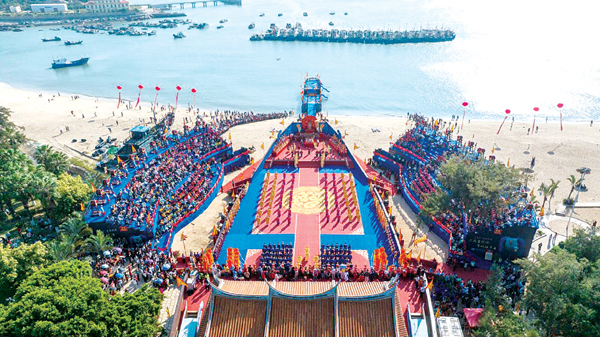 本报讯 今年是妈祖信俗列入《人类非物质文化遗产保护代表作名录》15周年,10月11日(农历九月初九),由湄洲妈祖祖庙董事会主办的纪念妈祖羽化升天1037周年大会暨海祭妈祖祈福大典在湄洲岛下山村深澳底海祭福船举行。省第十一届人大常委会副主任、中华妈祖文化交流协会名誉会长…