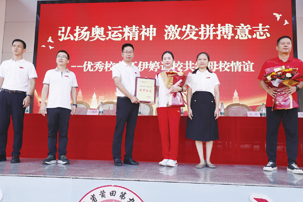 本报讯 为大力弘扬中华体育精神和奥林匹克精神,学习奥运健儿昂扬的斗志、顽强的作风,激发广大青年学生拼搏意志,牢记为国争光使命,为以中国式现代化全面推进强国建设、民族复兴伟业作出贡献。9月19日上午,巴黎奥运会射击双向飞碟项目奖牌获得者江伊婷应邀返回莆田第九中学…