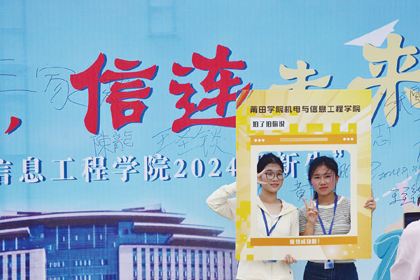 本报讯 千里奔赴,远跨山与海;华章既展,翘望下一篇,9月8日,莆田学院机电与信息工程学院2024年迎新工作顺利进行中!校园里横幅高悬、彩旗飘飘,各类迎新标语鲜亮醒目,处处洋溢着迎新的热烈氛围。“看,这里到处都是‘欢迎新同学’!”“这里视野比较开阔,打个卡!”新生吴…