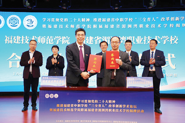 赓续文脉 院校携手 打造历史文化名城职教“新样板” ——福建技术师范学院附属福建省湄洲湾职业技术学校正式揭牌 本报讯 日前,福建省中职学校“三全育人”改革创新学术论坛暨福建技术师范学院附属福建省湄洲湾职业技术学校揭牌仪式在福建省湄洲湾职业技术学校举行。福建…
