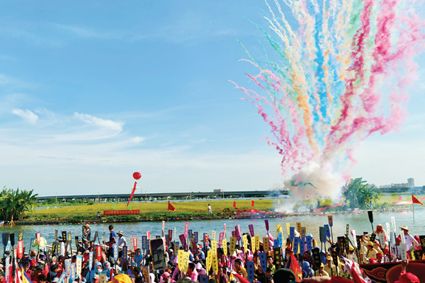 □实习生 吴黎莉 7月23日,京江东社龙舟教渡庆典民俗活动在黄石镇海滨村大沟精彩上演,河畔彩旗招展,锣鼓喧天,八方宾客纷至沓来,热闹非凡。“咚咚锵,咚咚锵……”上午8时许,热烈的锣鼓声响彻活动现场。入口处,文艺队队员身着红衣黑裤,整齐地敲打着锣鼓。她们微笑盈盈…
