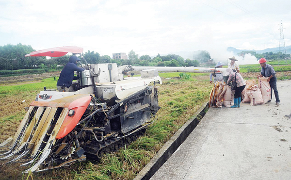 本报讯 随着大暑季节的到来,早稻也成熟了。为了早季粮食取得丰收,抓紧做好颗粒归仓,连日来,在仙游县的赖店、鲤城、鲤南、龙华、大济、度尾等乡镇的大片田野里,收割机、打谷机和农用车、人力车正繁忙地奔跑在田野里、机耕道上,汇集成一幅如诗如画的丰收画卷。 (陈国松)…