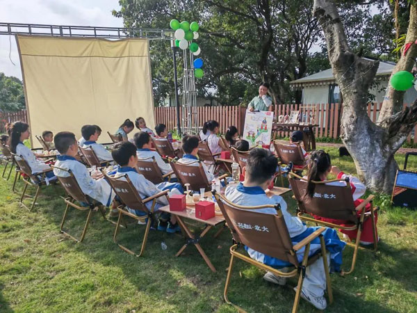 明代顶墩桥静卧溪流之上,见证着岁月变迁;3座百年老宅、200多座特色风格民居错落有致,妈祖宫等历史建筑庄严肃穆……沿着水岸一路前行,历史古迹在岁月积淀下更显底蕴绵长,让游客们沉醉其中。 以文塑旅,以旅彰文。 溪水边的绿道上,一块块展板详尽展示了莆田历史上21名状元的事迹,以及15名莆田籍院士的介绍。游客们相继穿过写有“解元”“会元”“状元”的“科举门”,仿佛穿越了一条古代“赶考之路”。 “投壶是古代宴饮时的一种投掷游戏,也是一种礼仪,请大家站在这里,把手中的箭投向壶里,投中就可以得分……”在不远处的“51趣·北大”帐篷营地内,研学机构领队戴曙正带着十几名儿童沉浸式体验投壶的乐趣。 “除了投壶,我们还体验了亲手制作荔枝香牌,让孩子们在做手工、玩游戏过程中学习中华传统文化和礼仪知识,孩子们都很开心。”戴曙说。