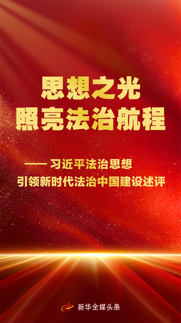 2025年11月1日,法治中国壮阔画卷再添厚重一笔——《中华人民共和国法治宣传教育法》施行。 首次将“习近平法治思想”郑重写入国家法律文本,推动全面依法治国的指导思想深入人心……这部法律落地实施,将进一步夯实全体人民为建设中国特色社会主义法治体系、建设社会主义法治国家共同团结奋斗的思想根基。 求木之长者,必固其根本;欲流之远者,必浚其泉源。 翻开《之江新语》,从真知灼见中感悟思想的源流。 “社会主义民主政治的不断发展和人民政治参与积极性的不断提高,对进一步落实依法治国基本方略提出了新的要求。” “道德是法治的基石。法律只有以道德为支撑,才有广泛的社会基础而成为维系良治的良法。” ………… 从河北、福建到浙江、上海,从依法治县、依法治市到依法治省……在地方从政历程中,习近平同志对法治的尊崇和践行一以贯之。 伟大时代孕育伟大理论,伟大理论引领伟大征程。 党的十八大以来,习近平总书记在领导全面依法治国、建设法治中国的伟大实践中,创造性提出一系列具有原创性、标志性的新理念新思想新战略,开辟了马克思主义法治理论中国化时代化新境界。 习近平法治思想系统阐明全面依法治国一系列根本性问题,恰如一座指明航程的灯塔,照亮中国特色社会主义法治道路,为法治中国建设提供行动指南。 伟大的思想,从时代发展中汲取丰沛滋养,在伟大实践中不断丰富发展、与时俱进。 历史车轮滚滚向前,中国式现代化壮阔征程再次镌刻下新的时代印记—— 2025年10月23日,党的二十届四中全会审议通过《中共中央关于制定国民经济和社会发展第十五个五年规划的建议》。 “完善实质性化解行政争议机制”“加快涉外法治体系和能力建设”……在这份事关中国式现代化建设全局、事关中华民族复兴大业的纲领性文件中,“法治”肩负着重要使命。 为国也,观俗立法则治,察国事本则宜。 “立足新发展阶段,贯彻新发展理念,构建新发展格局,推动高质量发展,满足人民群众对民主、法治、公平、正义、安全、环境等日益增长的要求,提高人民生活品质,促进共同富裕,都对法治建设提出了新的更高要求。” 踏上全面建设社会主义现代化国家、向第二个百年奋斗目标进军的新征程,习近平总书记深入阐释全面依法治国一系列重大理论和现实问题,为新时代新征程法治中国建设指路定向。 为中国式现代化保驾护航——明确“法治是中国式现代化的重要保障”,要在法治轨道上全面建设社会主义现代化国家; 处理好改革和法治的关系——强调“要坚持改革和法治相统一”“善于运用法治思维和法治方式推进改革”,推动全面深化改革与全面依法治国齐头并进; 统筹推进国内法治和涉外法治——要求“深刻认识做好涉外法治工作的重要性和紧迫性”,为中国式现代化行稳致远营造有利法治条件和外部环境; ………… 为经济建设提供法治保障,为政治建设划定法治轨道,把社会主义核心价值观融入法治建设,提升社会治理法治化水平,以法治力量守护美丽中国……统筹推进“五位一体”总体布局,习近平法治思想以更宽广的视野、更长远的眼光,彰显真理磅礴伟力、孕育实践蓬勃生机。 伟大的思想,植根中国文化沃壤,彰显中华文明特质,具有强大生命力。