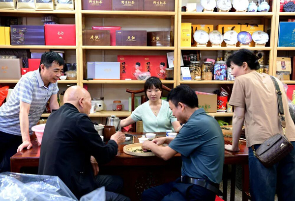 在福建省安溪县的中国茶都茶叶市场,茶商在市场店铺里拣选铁观音毛茶(2024年5月8日摄)。新华社记者 魏培全 摄