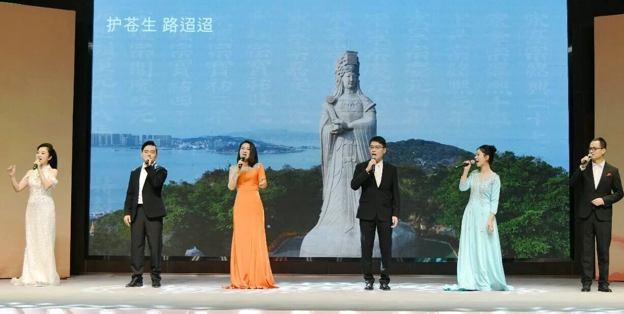 市政协委员林雅丽、市政协机关干部陈伟、林永龙,荔城区政协委员曾幸彬,市移动公司姚智治、刘超然演唱歌曲《妈祖》