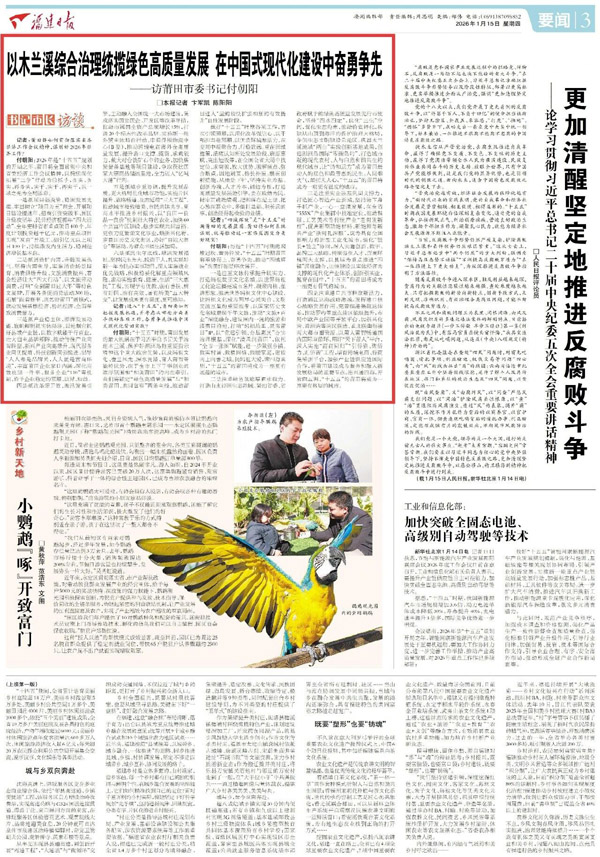 付朝阳:2026年是“十五五”规划的开局之年。莆田将全面贯彻中央和省委经济工作会议精神,以持续深化拓展“三争”行动为总抓手,务实、务实、再务实,实干、实干、再实干,以一域之光为全局添彩。 一是抓项目强投资,稳固发展支撑。牢固树立“项目为王”理念,开展项目建设提速年、招商引资突破年、园区升级攻坚年、民营经济提振年“四大活动”。全年安排省市重点项目400个、年度计划投资超千亿元,推动重点项目实现“双百”开竣工,招引亿元以上项目100个,持续激发内生活力,稳固经济增长基本盘。 二是抓消费扩内需,升腾发展热气。坚持内需主导,实施消费场景培育、消费供给升级、文旅消费振兴、赛会经济壮大“四大行动”。以文旅带动消费,打响“全到莆田过大年”等特色文旅IP,开展各类促消费活动300场,拓展“跟着赛事、演艺游莆田”新模式,联动发展票根经济、粉丝经济,全面释放消费潜力。