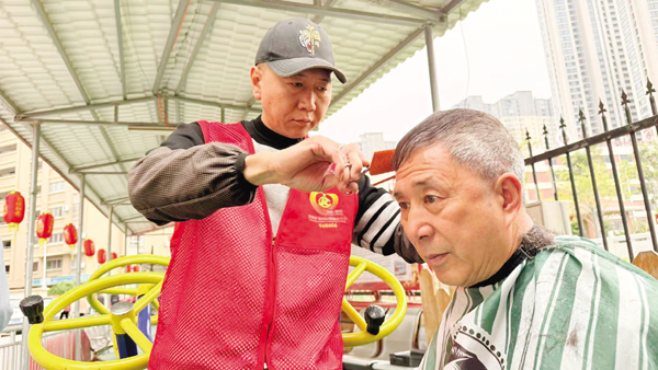 二月二龙抬头,小店迎来客流高峰。陈建辉与妻子早早开门消毒备岗,剪刀翻飞间,青丝簌簌落下,专注眼神不改初心。近九千个日夜,他扎根基层、服务乡邻,用一技之长立身,以一片善心助人。