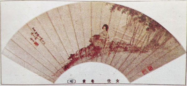 黄卷《仕女》 扇面