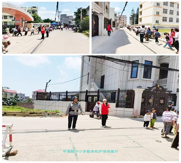 护导执勤,是平海岐下小学平安护学一道亮丽的风景线。为了学生安全能够得到保障,保安、执勤教师们每天在孩子们入、离校前分列在固定的执勤点,进行秩序维护、安全护送、文明引导等工作,他们默默付出自己的时间,默默奉献自己的爱心,坚守在护学岗位上,传递着满满的正能量,用自己的行动为孩子们撑起一把温情的“安全保护伞”,诠释着爱的真谛。(黄庆喜)