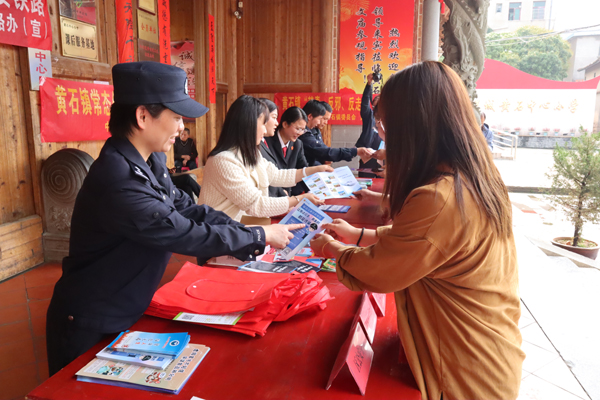 本报讯 3月31日上午,黄石派出所联合区法院、区检察院、区司法局等相关职能部门深入黄石文庙开展“平安建设宣传月”集中宣传活动。
