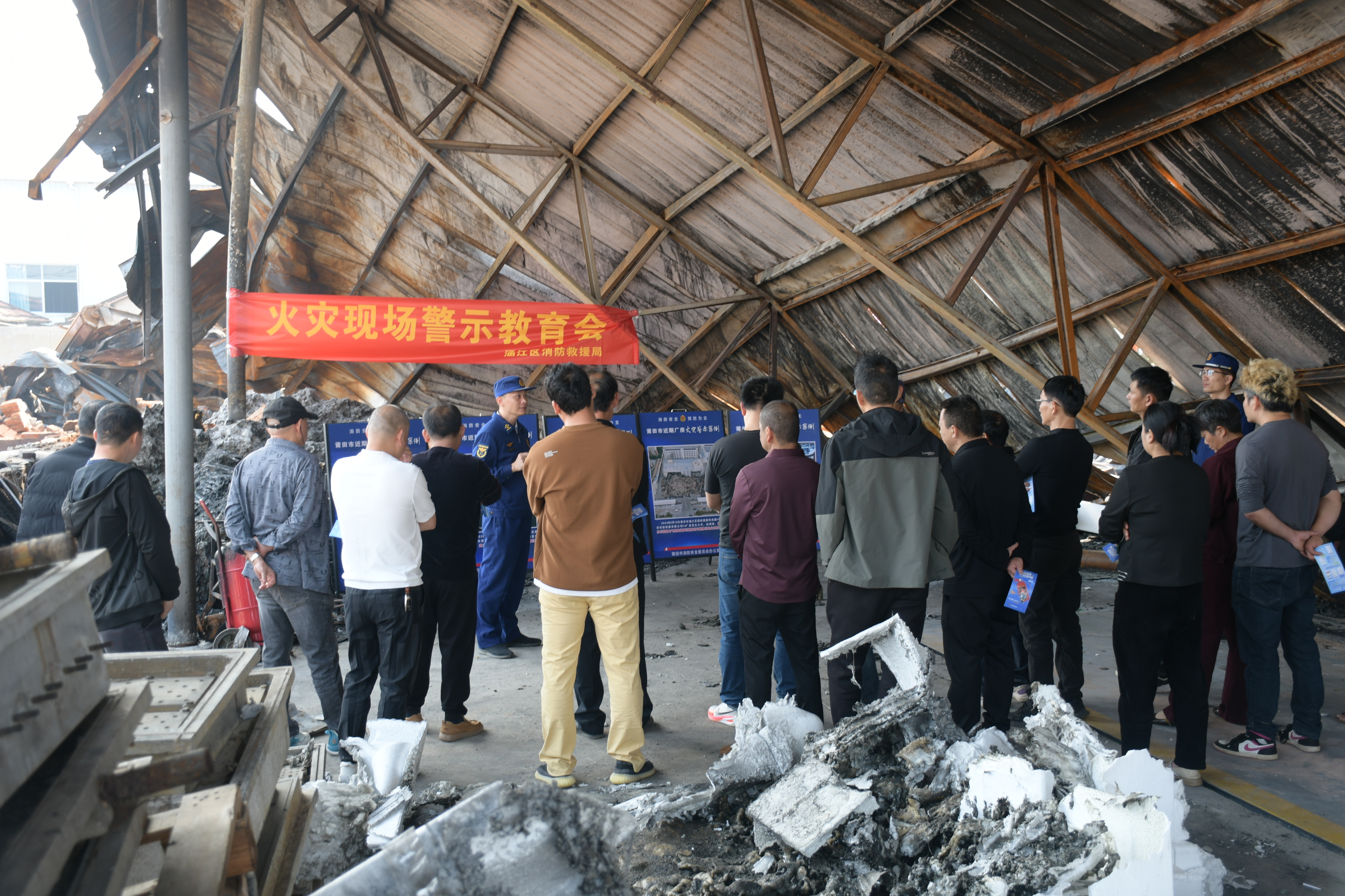 警示教育现场,消防监督员立足火灾实景,复盘事故起因、火势蔓延路径及救援处置过程,结合泡沫厂房物资仓储火灾特点,深入剖析电气隐患、违规动火、易燃物乱堆等问题引发的严重后果。同时,依据物资仓储防火规范,现场重点讲解易燃材料管控、动火作业审批、消防设施维保等要点,普及初期火灾扑救与自救逃生知识,同步科普日常消防安全自查自纠详细内容,让参会人员在“实景课堂”震撼中强化安全意识、掌握实操技能。
