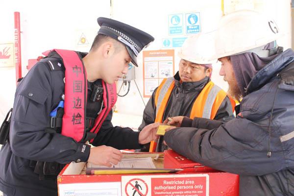 本报讯 1月9日,莆田出入境边防检查站民警在莆田港口岸东吴港区,监护同时在港的马耳他籍“奥瑞里亚”轮、希腊籍“天使海洋”轮卸载近2…