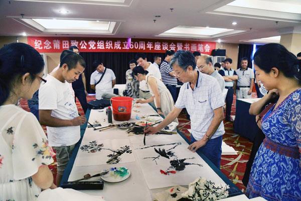 近日,致公党莆田市委组织10多位书法家和画家的致公党员,举行纪念致公党在莆田成立基层组织60周年书画笔会活动。图为书画家们在活动中挥毫泼墨。 (子木)