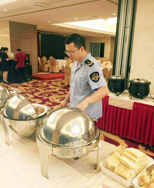 该局按照“预防为主”的原则,采取驻点监管和巡查监管相结合的方式,对运动员入住的酒店,专门派出业务精湛、责任心强的监督员进行驻点监管,做好比赛期间早、中、晚餐的食品安全监管工作。对食品原料进货、菜单、凉菜间等影响食品安全的关键操作区域以及现场操作人员个人卫生、食品留样工作进行督查,确保就餐运动员的饮食安全。