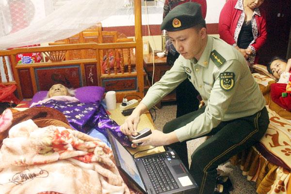 本报讯 日前,东吴边防派出所户籍民警在开展死亡人员名单核实清理工作中了解到,东埔镇梯亭村90余岁的陈世宝老人身患重病,瘫痪在床,前段时间老人的家属带其去医院看病途中,不慎将老人的身份证遗失,导致无法办理老人的农村医保,无法报销医疗就诊费用。该所户籍民警了解情况后,立即与老人的家属取得联系,利用周末休息时间携带办证设备到老人家中,给老人拍照、采集指纹、办理身份证,并承诺送证上门,为老人解决了后顾之忧。“太感谢了,你们派出所民警的服务真是太贴心了。”老人家属对户籍民警认真负责的工作态度连连称赞。 (曾飞)