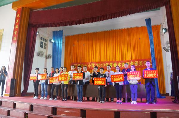 11月14日上午,在涵江区石庭中心小学举行的第四届“黄春水奖学金”颁奖仪式上,来自该校的100名优秀学子拿到了由“黄春水慈善服务中心”提供的10万奖学金。