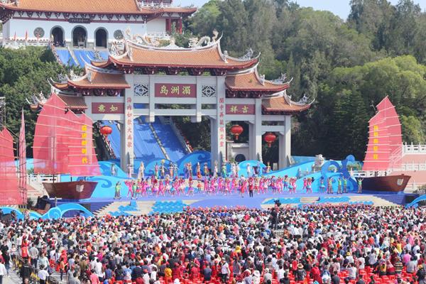 本报讯 10月28日上午,中央电视台“心连心”艺术团带着党中央、国务院对妈祖故里人民的亲切关怀和深情厚谊,在湄洲岛天后广场举行慰问演出。演出由两岸知名歌手、奥运冠军等组成强大阵容倾情献演,吸引近万观众到场观看。演出分为序幕《好风正当时》、《情系两岸一线牵》《风正帆悬海天阔》《一枝一叶总关情》《喜看八闽山河美》四个篇章及尾声《扬帆再远航》6个部分,央视著名主持人董卿、李佳明、张泽群、张蕾联袂主持,殷秀梅、吕继宏、张也、玖月奇迹、扎西顿珠、彭立等歌手倾情演出。演出期间,3名福建籍奥运冠军联手献唱闽南语歌曲《爱拼才会赢》更是把现场气氛推向一个又一个高潮。