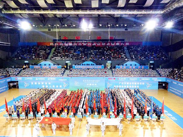 本次开幕式由入场仪式和文艺表演组成。当晚19时整,市运会开幕式正式开始。伴随着高昂优美的旋律,仪仗队员以矫健的步伐护拥鲜艳的五星红旗和市第四届运动会的会旗走进体育馆。紧接着,现场奏响节奏鲜明的《运动员进行曲》,来自各县区(管委会)和各行业系统体育的19个代表团运动员代表、裁判员代表精神抖擞依次入场。