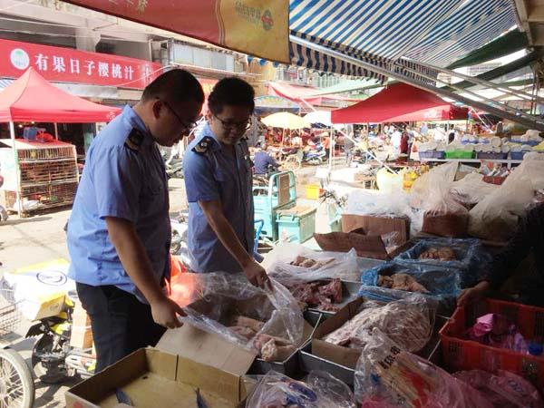 本报讯 为进一步加强市场流通领域冻品的监管,规范辖区冻品的经营秩序。近日,黄石食药监所对辖区内农贸市场、超市等场所的冻品经营户进行检查,重点查看经营者是否持证持照合法经营;从业人员是否持有有效健康证件;是否落实好进货查验、索证索票等食品安全制度;冻品内外包装标签、标识是否合法。执法人员通过宣传《食品安全法》法律法规,督促经营者认真做好自查工作,严防不合格食品流入市场。 (林圣贤)