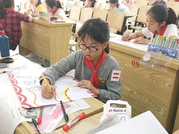 在该校多媒体教室里,来自中心、育才、海星等小学近百名选手,在现场编排、设计手抄报的版面,文字、插图都由手工抄写、绘制。3个小时的功夫,展现在眼前的每份手抄报均排入3篇以上文章、3幅以上插图,作品标题制作醒目、大方,主题突出,组稿合理,用色协调,版式美观,图文布局合理,展现了侨乡少年的才智和制作水平,令人拍案叫绝……