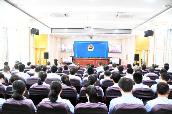 城厢公安分局组织机关干警观看十九大盛况。 (白杰/摄)
