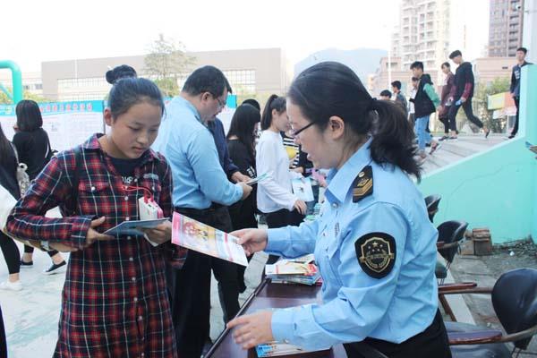 本报讯 11月2日下午,城厢食药监分局走进了莆田科技职业技术学校,开展“药品安全科普知识进校园”活动。本次活动邀请了专业的讲师团从安全用药、合理用药着手,给在校的200余名师生讲了一堂别开生面的知识讲座。从服药姿势、服药方法、特殊人群用药、说明书的作用等方面,图文并茂的对学生介绍安全用药知识,通过正确认识不良反应和药物滥用的危害等方面,与学生积极互动,呼吁安全用药健康生活,合理用药美丽人生,受到在校师生的积极参与和热烈欢迎。课后,还在该校操场上通过展板展示、发放《食品药品安全知识手册》、《药品知识宣传单》、《医疗器械宣传单》和《保化知识宣传单》共2000余份。
