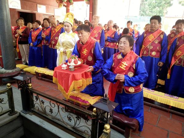 当天,文峰宫广大妈姐信众举行妈祖信俗绕境踩街,随后举行妈祖三献礼仪式。