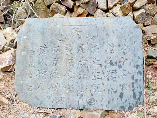 清,柯山,处士瑞山雷先生配蓝氏孺人,暨男荣峰淑配媳妇黄氏孺人,佳城,乾隆庚寅,仲秋吉旦。