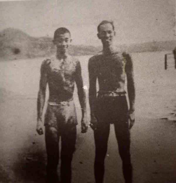 ▲1948年涂元渠(右)和涂元晞(左)在台湾淡水海滨合影