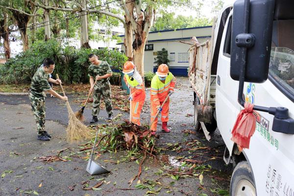 双台风过后,湄洲岛投入灾后秩序恢复工作,环卫工人一早就出动对路面的枯枝落叶进行清理,湄洲边防派出所官兵也帮忙环卫工人进行清理,岛民也对自家门前的垃圾进行清理,公交车也已恢复班次。台风期间低压用户报修近70单,全部抢修完成、恢复送电,全岛电网正常运行。