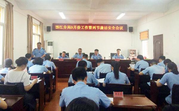 本报讯 涵江食药监分局坚持预防为主、惩防并举的原则加强廉政建设。在中秋、国庆重要时间节点,狠抓纪律作风建设,不折不扣落实中央八项规定,严防“四风”反弹回潮,营造廉洁节俭的节日氛围。