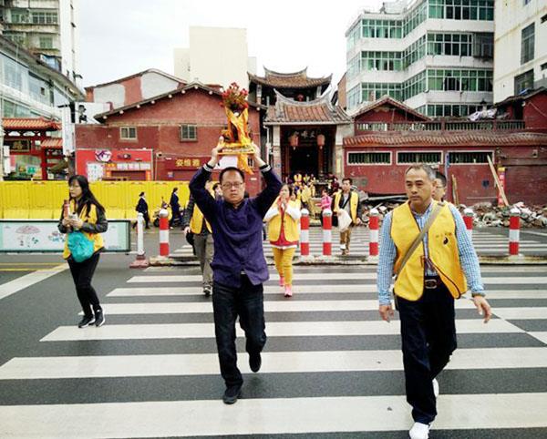在旧殿,进香团统一向文峰宫的妈祖行三献礼。仪式后,文峰宫管委会主任陈鹭玲为进香团介绍了文峰宫的历史渊源,并陪同信众参观文峰宫历史文物。