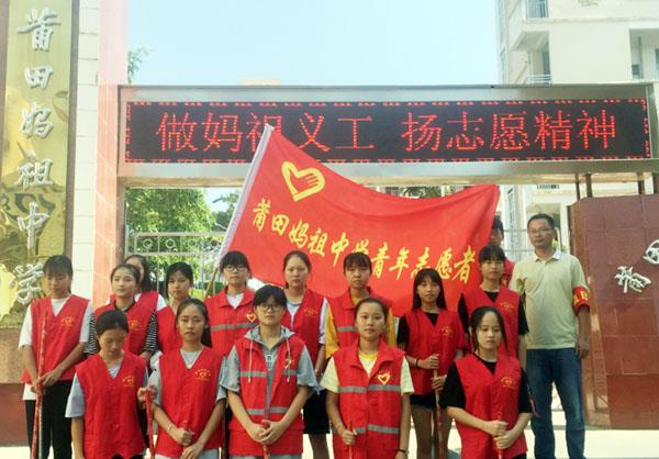 莆田妈祖中学,一所有着妈祖文化特色的海岛学校,历年来,学校教师兢兢业业,致力于发展岛上的教育事业,学生们努力向上,拼搏进取。我们沐浴着妈祖的荣光,也在不断传承妈祖“立德、行善、大爱”的精神,为了更好地践行妈祖精神,该校于2015年成立了一支师生“妈祖义工服务队”,在学校和全区大型活动中,随处可见义工们的身影,他们无怨无悔,他们的笑容,他们的以身作则,正是妈祖中学的另一张名片! (时报记者 林锦堂)