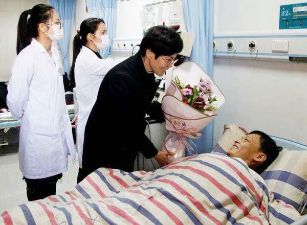 当天上午8:40左右,蔡忠华开始进行造血干细胞采集,救命的血液流向真空袋。采集期间,省市红十字会工作人员给他送来证书和鲜花,蔡忠华也一直面带笑容。“有一点紧张,但更多的是期待。”蔡忠华笑着说。他说:“希望对方顺顺利利,早日康复。”中午12:28左右,近4个小时的造血干细胞采集终于结束。这一袋满载着蔡忠华暖暖爱心的326ml造血干细胞,这份“生命种子”将于今天由以色列取髓人员专程送回国救治患者。
