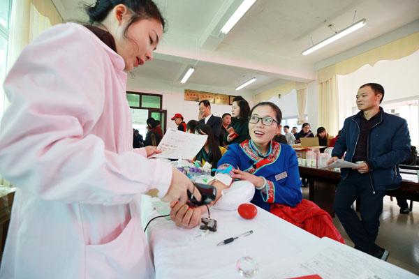 在湄洲岛红十字医院四楼记者看到,参与献血的干部、职工及群众在医护人员的指引下依次进行填表、量血压、测血型,并顺利完成献血。