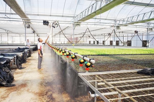 近日,记者跟随中华环保世纪行(莆田)队伍来到位于仙游县龙华镇的蔬菜基地,被这里一排排蔬菜大棚整齐地排列着,一畦畦的叶菜碧绿一片所吸引。在育苗棚里,工人轻按遥控器,水肥一体化灌溉系统自动来回对菜苗进行微灌。据龙华基地技术总监吴章洪介绍,育苗是蔬菜生产的关键环节,蔬菜集约化育苗技术具有操作简便、育苗成活率高、丰产高效和实现规模运作等优点,减少农业生产成本。