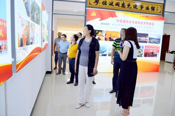赵爱红一行在中共政和县委常委、统战部部长苏久勤的陪同下,参观了石圳村廖俊波先进事迹馆和政和同心经济开发区廖俊波先进事迹馆,听取了有关负责人介绍廖俊波先进事迹,观看廖俊波先进事迹系列图片展,实地感受了廖俊波在政和期间所创造的“政和速度”与“爱与政和”的深切情怀。