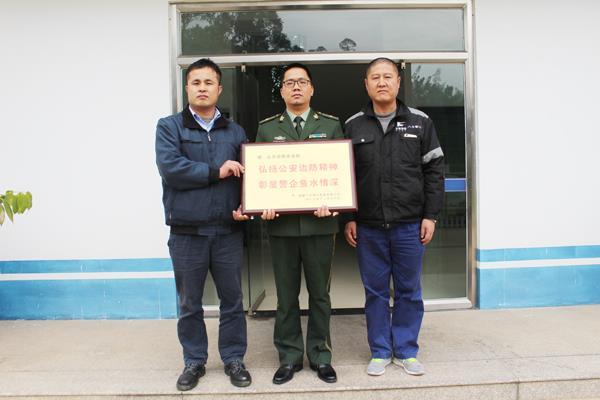 本报讯 日前,省级重点企业八方港口有限公司向山亭边防派出所赠予“弘扬公安边防精神,彰显警企鱼水情深”的荣誉牌匾。