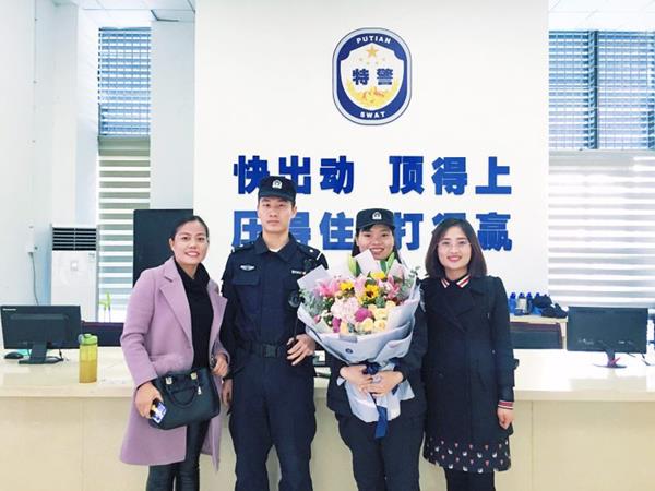 本报讯 1月10日,是“110”宣传日,两位美女捧着鲜花,推开了秀屿公安分局巡特警反恐大队值班室的门,向民警说:“警察蜀黍,辛苦啦!”并向值班民警送上鲜花。经了解,该两位女士时常出入莆田火车站,看到巡特警民警不畏烈日,不畏严寒,在火车站广场巡逻执勤、帮助过往旅客,觉得民警很辛苦,心里产生一种敬慕之心。所以,就在“110”这个特殊的日子,给民警送来鲜花以表达自己的心情。 (周金赞 曾新强)