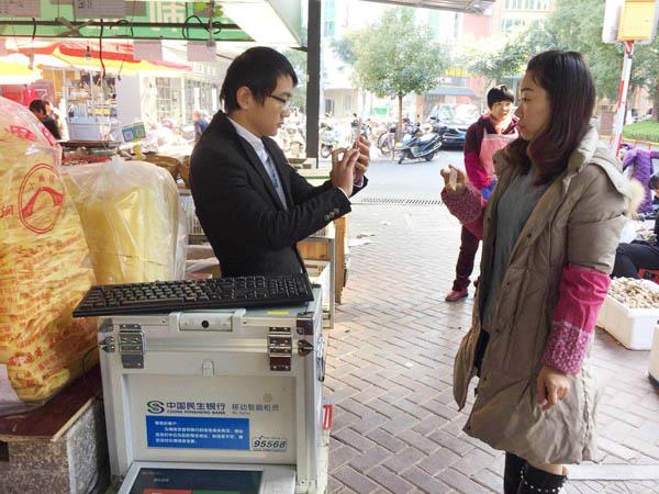 近日,邮储银行仙游坝下支行组织工作人员进入菜市场,为广大商户介绍安全便捷的扫码支付收款业务。为解决客户到银行网点办卡的麻烦,该行还多次上门收集资料并利用移动终端现场开卡。